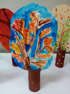 Przyszła do nas jesień. Drzewa ubierają się w jesienne szaty. Uczniowie z klasy 2b podczas zajęć plastycznych namalowali drzewa w...