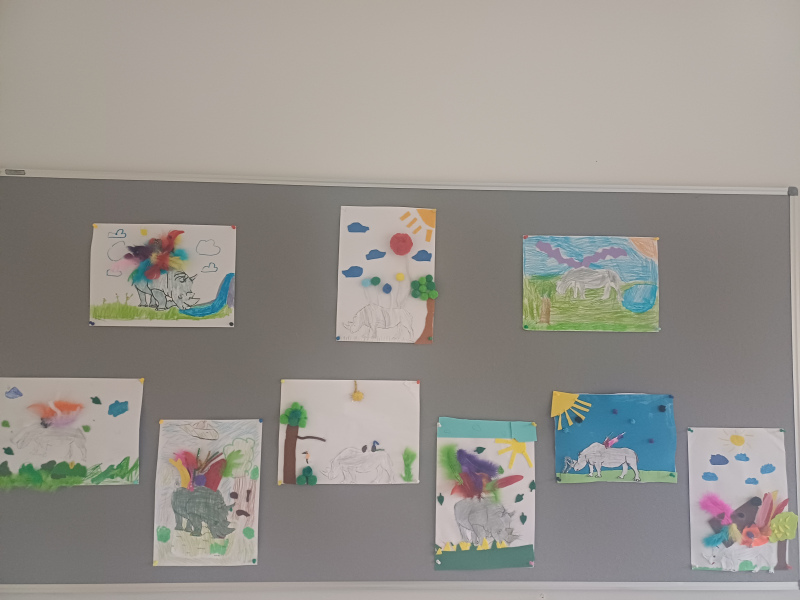“Kto z was chciałby rozweselić pechowego nosorożca?” filozoficzna bajka Leszka Kołakowskiego była lekturą w klasie 2 a. Podczas zajęć dzieci rozmawiały o marzeniach, przyjaźni, rozwiązywały zadania związane z książką. Na zakończenie w parach zaprojektowały nosorożcowi skrzydła. Powstały pomysłowe, pełne fantazji prace.