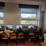 Uczniowie z klasy 2a wykonali karty pracy które ozdabiają salę lekcyjną. Zakodowany obrazek po prawidłowym wypełnieniu przedstawia kolorowy parasol.